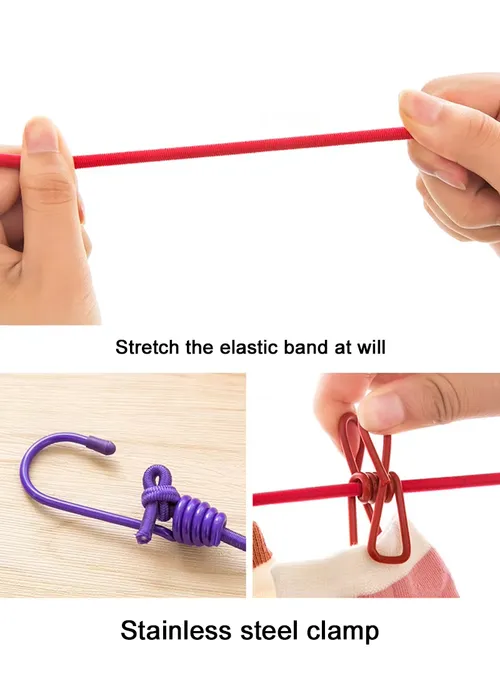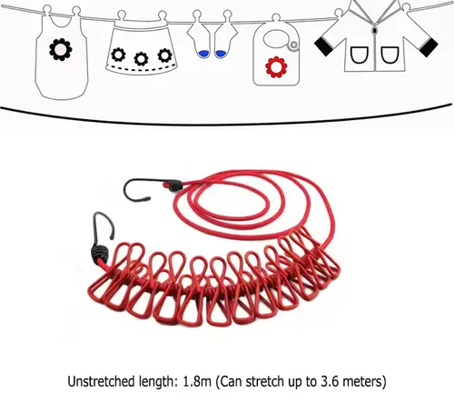 This portable travel clothesline conveniently dries your socks, undergarments, tops,swimsuit, pants, bra, towel, briefs, scarf and other clothes. Great for travel, camping, outdoor and indoor use.