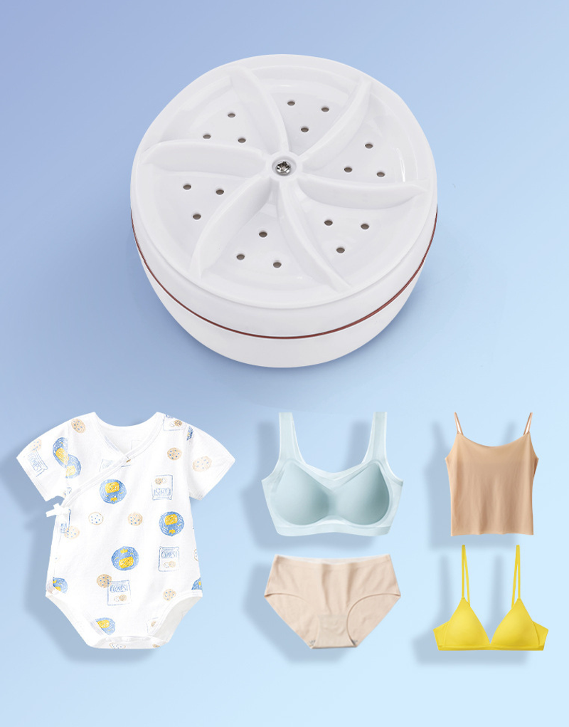 Our Mini Washing Machine is recharges via USB that features bubble spray, 2D flow, immersion cleaning, and ultrasonic waves.