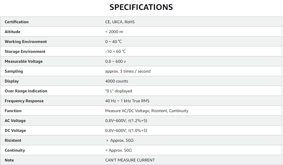 【Non-contact】Completely safe Non-Contact Voltage test with a visual and audible alarm; a time-saving and safe feature. You can measure the voltage on the AC wire without having to connect the wire, which makes troubleshooting the line much easier