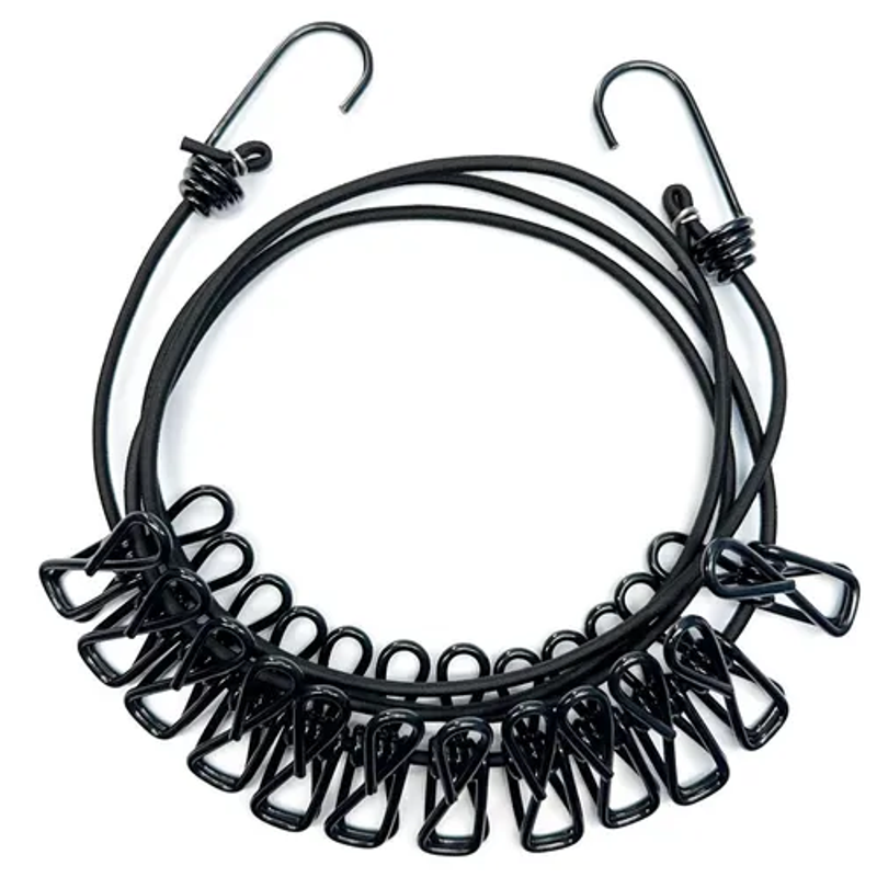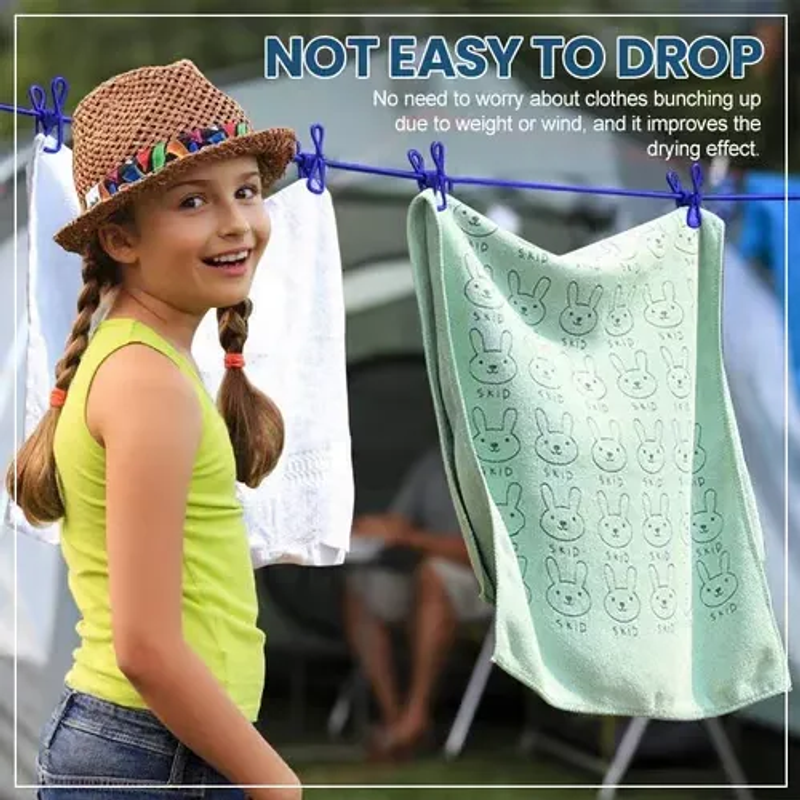 This portable travel clothesline conveniently dries your socks, undergarments, tops,swimsuit, pants, bra, towel, briefs, scarf and other clothes. Great for travel, camping, outdoor and indoor use.