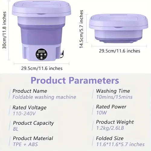 Perfectly designed for city living, it makes laundry day much easier, whether you're in an apartment, dorm room, or RV. This innovative washing machine combines convenience and durability with a compact design that fits perfectly into small spaces. Its efficient use of water and energy not only helps reduce your carbon footprint but also saves money. Ideal for handling everything from delicate items to urgent laundry, it allows you to maintain cleanliness without the hassle of frequent trips to the laundromat.
